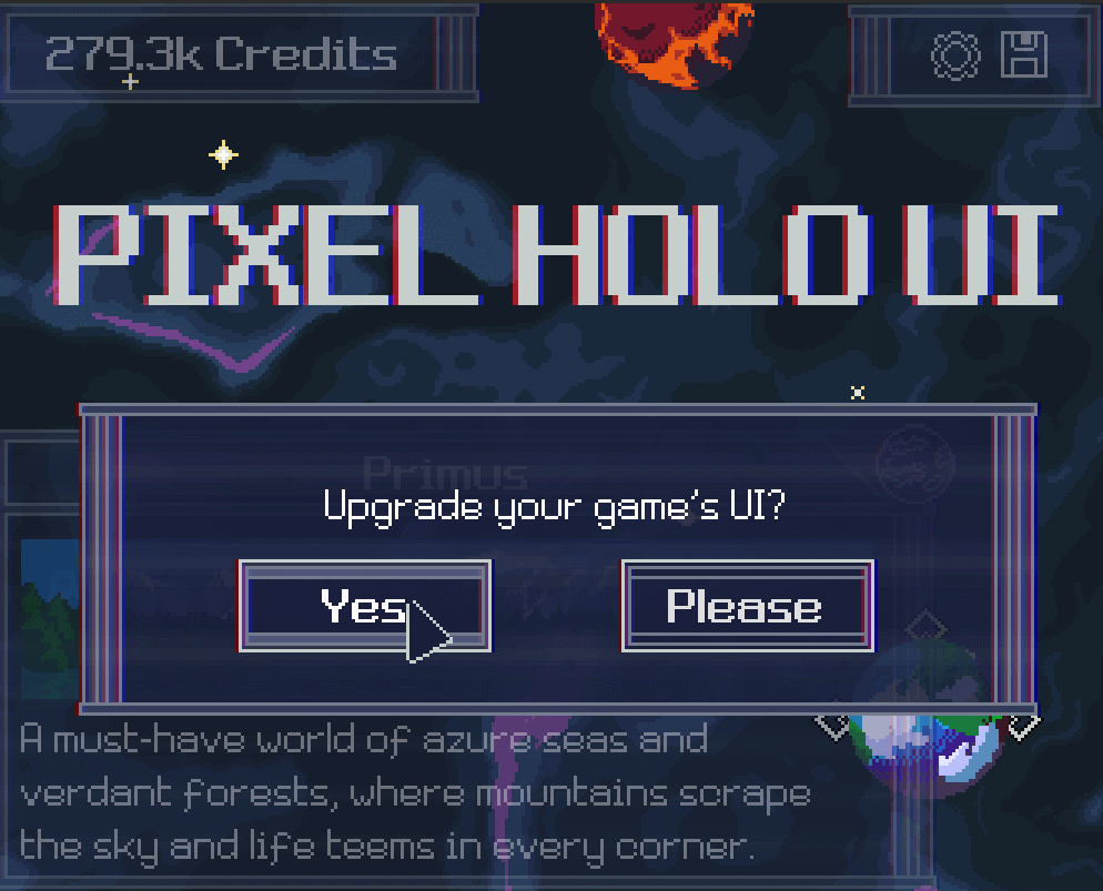 I have just released a Pixel Holographic UI pack to complement your space games, check it out here ! As always, I am relying on your suggestions to improve it!...